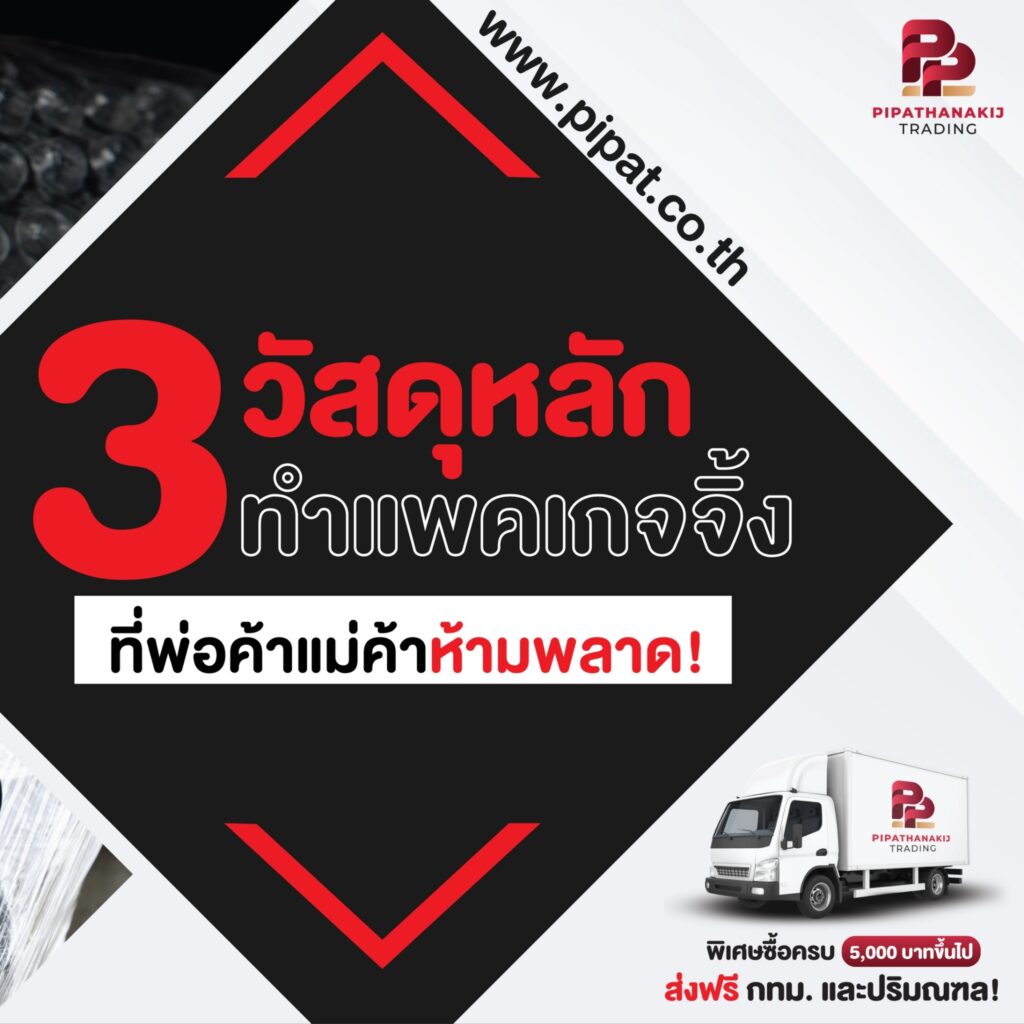 3 วัสดุหลักทำแพคเกจจิ้งที่พ่อค้าแม่ค้าห้ามพลาด! . วัสดุแพคของชั้นดีต้องคิดถึงพิพัฒนกิจเทรดดิ้ง ราคาถูก คุ้มคุณภาพ ซื้อแล้วไม่ผิดหวัง! . ฟิล์มยืด เหนียว ยืดหยุ่นได้ดี เนื้อพลาสติก มีความใสจนมองเห็นข้างใน ใช้เก็บมุมแหลมของสินค้า หรือพันสินค้ากันรอยขีดข่วนได้ ความหนา 0.15 ไมครอน หน้ากว้าง 50 ซม. ความยาว 300 ม. . พลาสติกใสห่อของ ทำจากพลาสติก PVC ยืดหยุ่นสูง สีใส มันวาว ใช้ในงานก่อสร้าง ห่อสินค้า/เฟอร์นิเจอร์ ใช้กันฝุ่นได้ มีหลายขนาดตามการเลือกใช้ ความหนา 0.012 – 0.030 มม. หน้ากว้าง 48 – 72 นิ้ว ความยาว 20 – 60 หลา . ม้วนพลาสติกกันกระแทก (Air Bubble) น้ำหนักเบา รองรับแรงกระแทกได้ดี ทนสารเคมี กันฝุ่นและกันชื้น สามารถตัดได้ตามต้องการ ใช้สำหรับห่อหุ้มสินค้า หรือทำซองเอกสาร หน้ากว้าง 1.30 ม. ความยาว 100 ม. . พิพัฒนกิจ เทรดดิ้ง ผู้จัดจำหน่ายวัสดุงานป้าย งานโฆษณา ที่ครบครันที่สุดในประเทศไทย คุณสั่ง เราพร้อมส่ง ครบ จบ ในที่เดียว . สอบถามสเปกหรือสั่งซื้อสินค้าได้ที่ พิพัฒนกิจเทรดดิ้ง line@ : https://bit.ly/3Auq1QQ (@pipat) Inbox : m.me/plastic.pipat เบอร์โทร : 095-207-0100 , 099-287-0738 ===
