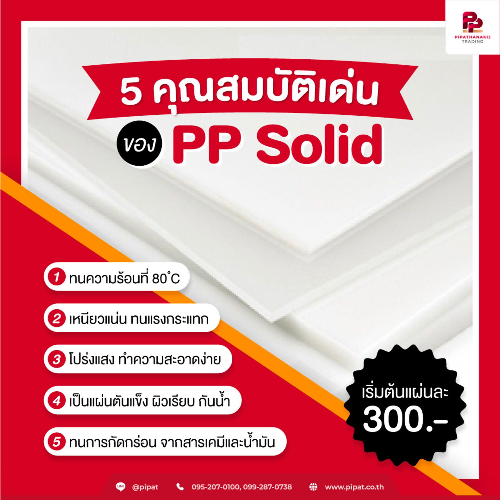 แผ่น PP Solid Sheet เป็นพลาสติกชนิด Polypropylene ด้วยกระบวนการรีดแผ่น หรือ เรียกอีกอย่างว่า เอ็คทรูชั่น ด้วยเทคโนโลยี ที่ทันสมัย